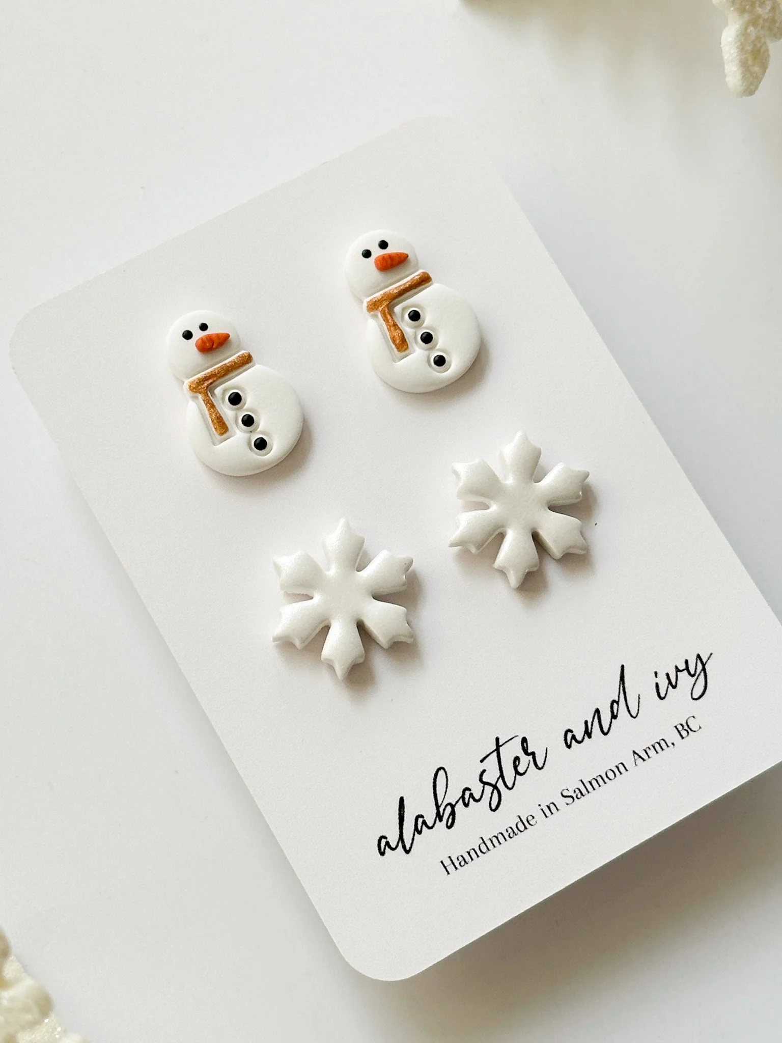 • Set Includes: One pair of hand detailed snowman studs & one pair of snowflake studs